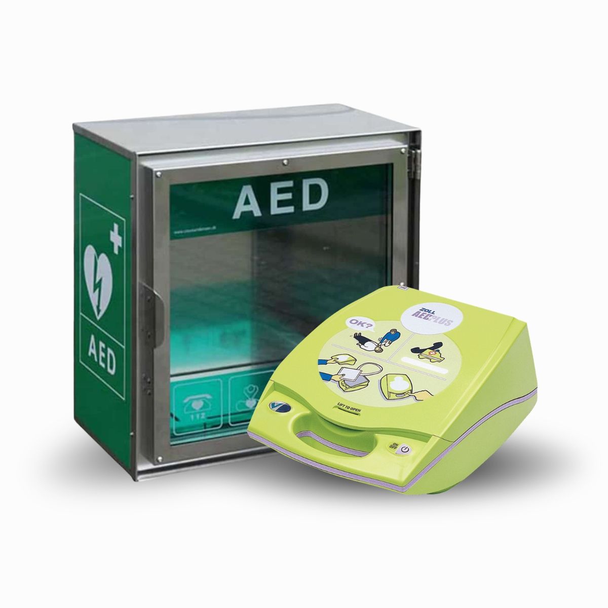 - Synlighed: Skabets klare grønne farve og det tydelige hjertestarter-symbol gør det let at finde i en nødsituation. Det kan være livsvigtigt at have hurtig adgang til en hjertestarter, når hvert sekund tæller.